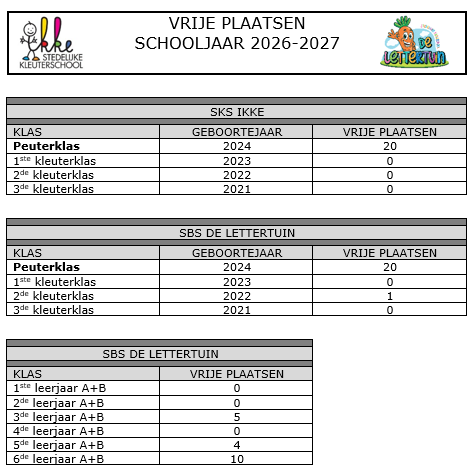 Huidige vrije plaatsen (toestand op 02/02/2026)